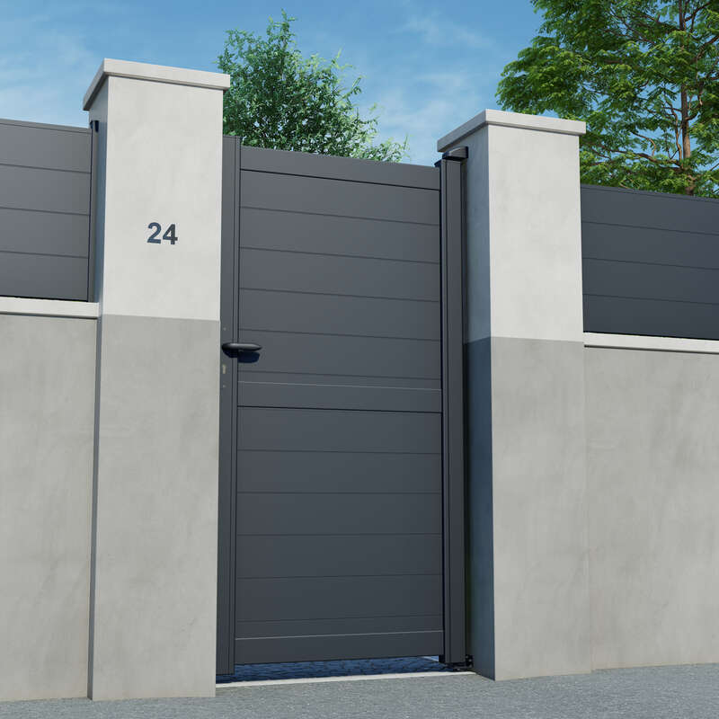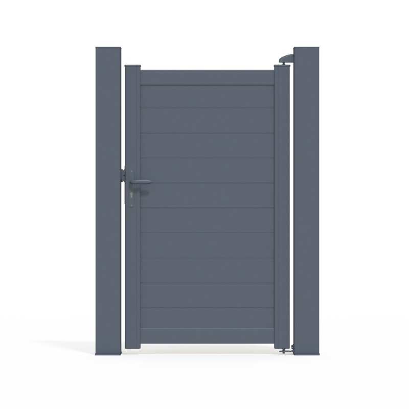 If est un portillon plein qui délimite en tout discrétion votre entrée. Il vous garde à l’abri des regards avec son design sobre et épuré. Largeur entre piliers 1040 mm. Hauteur hors sol 1740 mm.