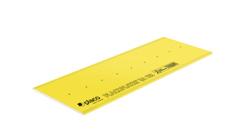 Plaque de plâtre haute dureté à parement jaune de type mono-parement de largeur 900 mm. Résistante aux chocs, gain de temps à la pose. Destinée à l'aménagement intérieur des bâtiments de type établissements de santé, d'enseignement.