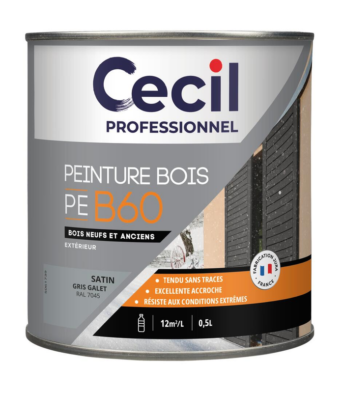 Peinture extérieure bois pour conditions extrêmes PEB60 satin gris galet - Pot 0,5 L